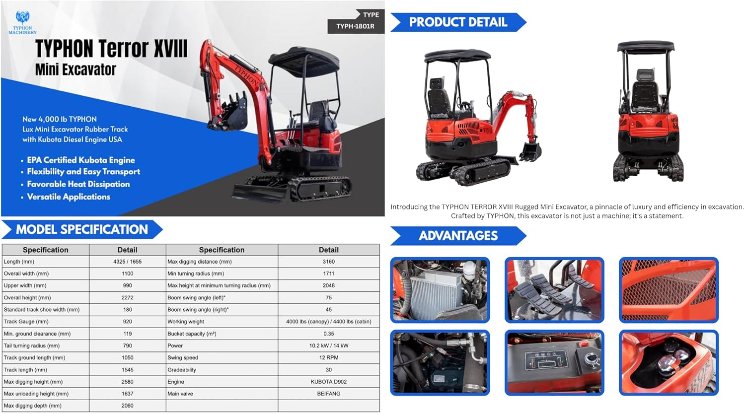 As a certified Typhon reseller, we guarantee that every TERROR XVIII Mini Excavator is an authentic and original machine, backed by our commitment to your success and continuous uptime.