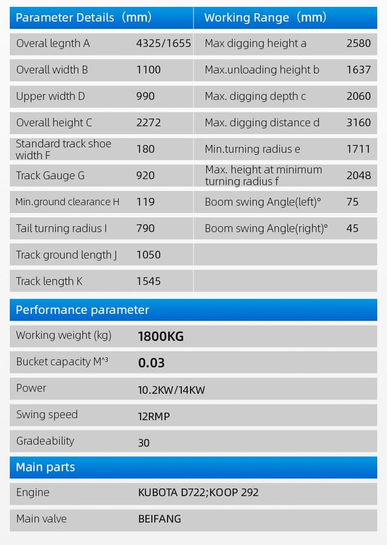 The 4,200 Pounds operating weight ensures strong stability and digging capability.