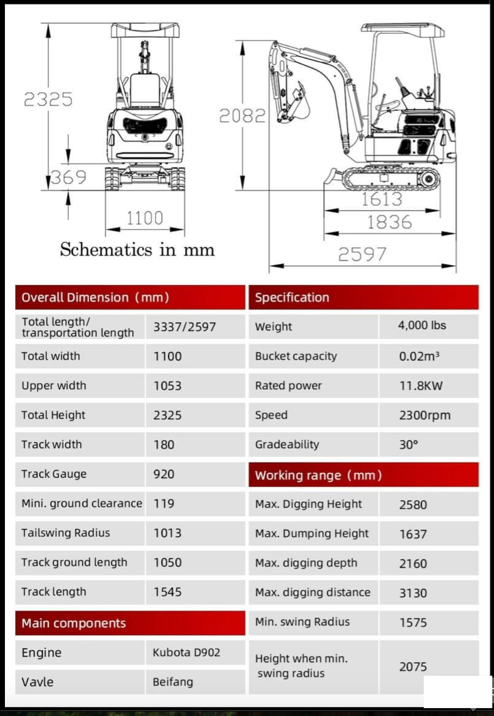 Reliable Diesel Heart: Features the powerful D902 engine (15.8 HP), ensuring consistent, water-cooled performance that stands up to intensive construction projects.
